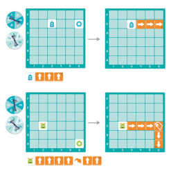 Introduction aux capacités pratiques de codage. Les joueurs s’affrontent pour ramasser les morceaux de fromage qui se trouvent sur le plateau. Le joueur avec le plus de morceaux de fromage remporte la partie. Activités complémentaires incluses pour un jeu encore plus drôle.