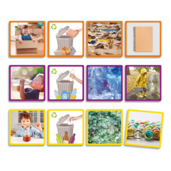 Les enfants découvrent et réfléchissent à ce que nous jetons tous dans notre quotidien la vie. Pour une première approche de l'économie circulaire.Contenu : 1 plateau de jeu composé de 4 pièces, 2 cartes de collecte des déchets, 35 cartes avec déchets, 1 carte d'usine, 1 carte chèque, 1 pion en bois, 1 dé 1 à 3 et les instructions