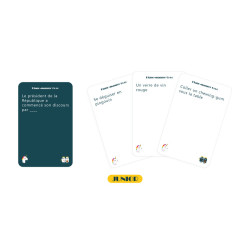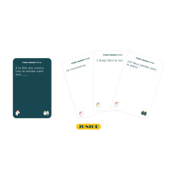 But du jeu : un jeu d'adresse et de prise de risque en 3 dimensions, dans lequel les enfants incarnent de jeunes moussaillons éléphants, qui tentent de mettre la main sur les trésors du capitaine Girafe.Contenu : 1 fourreau en carton, 4 figurines "Eléphant", 4 planches aimantées, 1 plateau "Ponton", 49 cartes "Trésor", 60 jetons en bois et la règle du jeu2 à 4 joueurs - Durée : 15 min