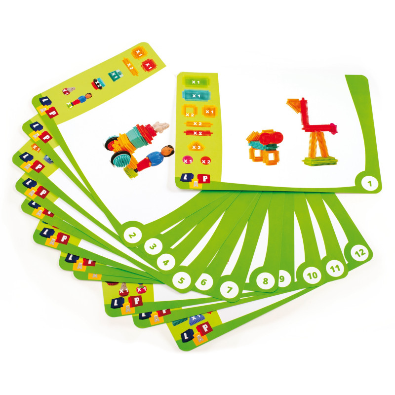 Jeu de construction multidirectionnel qui favorise l’acquisition des notions d’espace et la différenciation des formes et des couleurs.Contenu : 100 pièces assorties (boules, visages de personnages, tiges 2 boules, tiges 3 boules, pièces carrées, 2 tailles de pièces rectangulaires, roues coloris assortis) et d'un livret d’activités