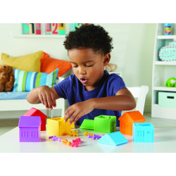 Jeu en bois pour de multiples activités de tri et de motricité. L'enfant peut trier les boules par couleur en les classant dans les alvéoles du plateau de jeu. Il peut prendre une carte modèle et suivre les instructions. 3 niveaux de difficulté: trier seulement les couleurs, trier les couleurs, les tailles des boules et respecter les quantités. Et enfin respecter une consigne numérique. Contenu : 1 plateau de jeu avec 6 alvéoles, 48 boules (2 tailles), 10 cartes pour 15 consignes différentes, 1
