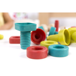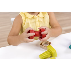 Des pièces translucides et en plastique souple pour réaliser les modèles proposés ou créer ses propres dessins. Les pièces sont à fixer sur le support à l’aide d’un tournevis.Contenu : 180 pièces géométriques, 12 cartes d’activités et 1 tournevis