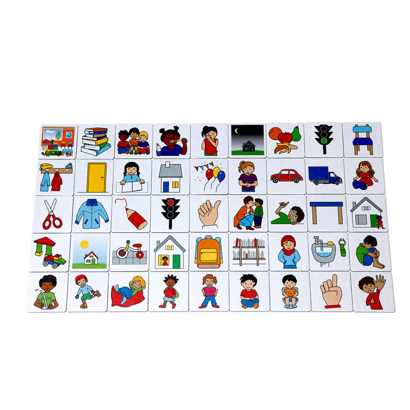 Les images sur les cartes sont basées sur le vocabulaire primaire (basé sur la hiérarchie des besoins de Maslow) dont les enfants ont besoin en premier lieu pour développer leurs capacités de communication et leur autonomie.Contenu : 42 cartes et 1 manuel pédagogiqueÀ utiliser avec le tableau mural parlant enregistrable