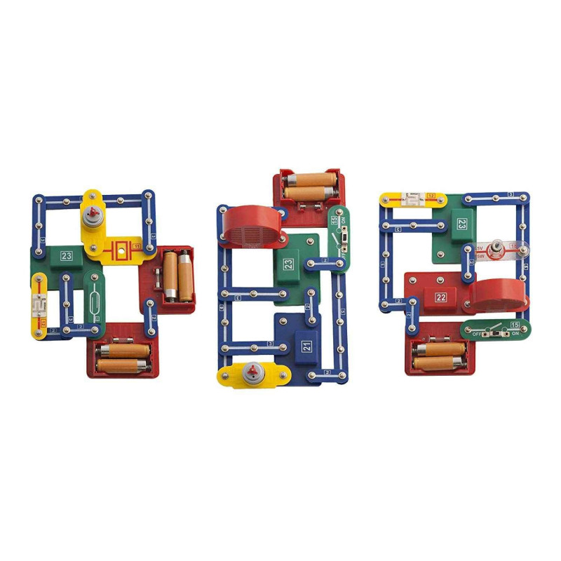 Pour découvrir les bases de l'électricité et de l’électronique en classe. Le kit offre de nombreuses heures d’amusement tout en découvrant les concepts de l’électricité et de l’électronique. Toutes les pièces sont reliées par bouton pression et sont imaginées pour un montage rapide et facile.88 expériences différentes présentées dans un guide de 75 pages