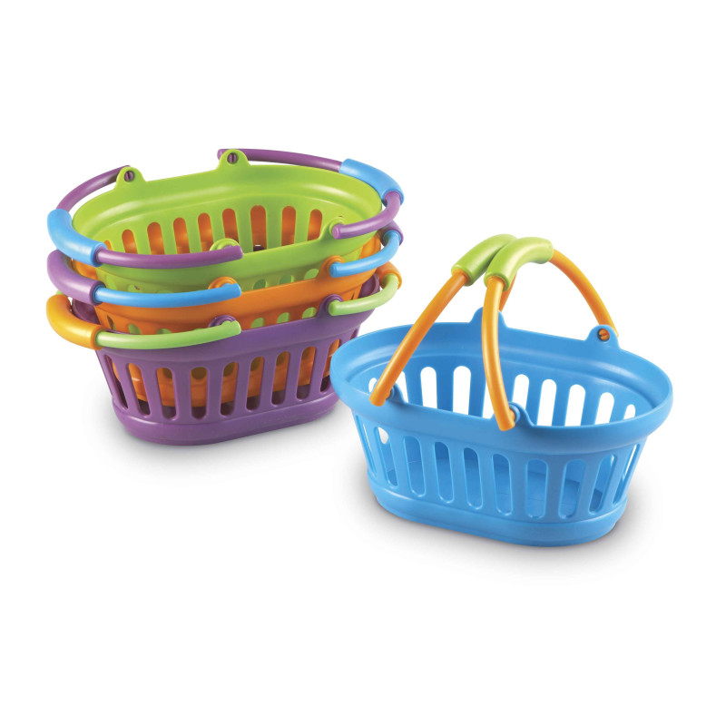 Paniers en plastique, avec 2 poignées. Couleurs assorties.