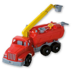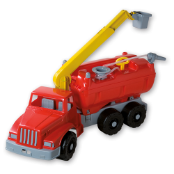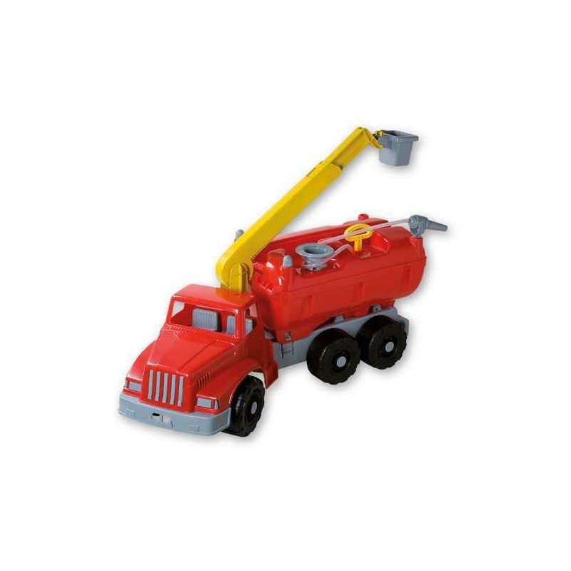 Camion de pompier d’environ 75 cm de long. Équipé d’un bras mobile doté d’un système de pulvérisation e?cace et d’un réservoir pour l’eau. La nacelle est amovible. Matière : plastique ABS haute qualité, lavable et non toxique.