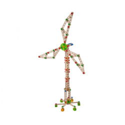 4 constructions possibles : une locomotive, un avion, une dépanneuse, ou un robot à l'aide du feuillet de modèles inclus.Contenu : 100 pièces comprenant des lamelles de bois de hetre perforées, des vis en plastique, des roues en caoutchouc et un tournevis
