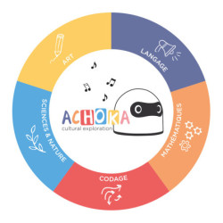 Le robot ACHOKA est un robot d’apprentissage simple d’utilisation et le plus ludique du marché des supports digitaux. Il parle 4 langues, raconte une histoire, joue de la musique, se déplace sur un plateau de jeux, suit les instructions et est un support autocorrectif pour les enfants. Les intérêts pédagogiques sont les suivants : - développer le langage, le vocabulaire, la prononciation et la construction du récit. – s’exercer à la concentration, à l’écoute et à la mémorisation. - Développer la