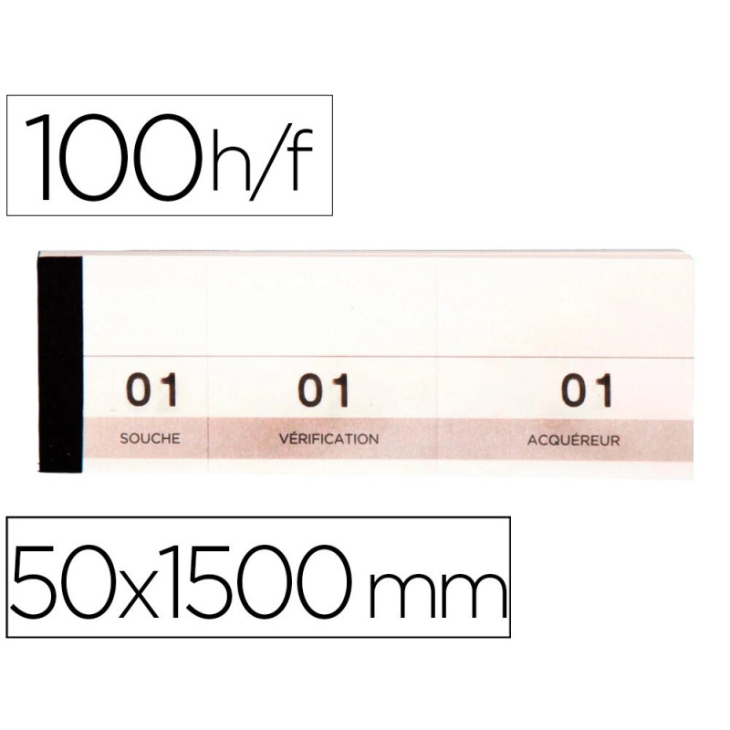 Papier micro perforé 3 coupons dont 2 détachables. 100 feuilles. Dimensions : 50 x 150 mm.
