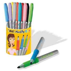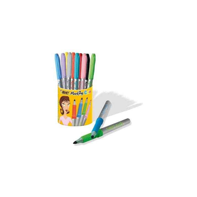 Marqueurs permanents aux couleurs vives, pointe ogive moyenne, encre permanente à bas e d'alcool - corps plastique avec grip de confort, couleurs assorties : noir, violet, fuschia, bleu clair, vert clair, jaune, rouge, turquoise, rose, marron, Idéal pour l'archivage des dossiers.
