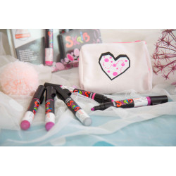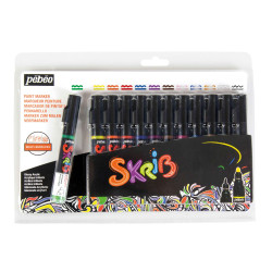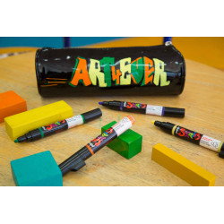 Marqueur acrylique à base d’eau, à très fort pouvoir couvrant et finition semi-satinée. Existe en 3 types de pointes : fine (T100), moyenne (T300) et large biseautée ( T800C). Permet d'écrire, dessiner, colorier sur toutes les surfaces : carton, toile, pierre, céramique, verre, bois, tissu, plastique, métal… et bien sûr le papier ! De multiples techniques possibles pour créer sans limites : effets spray, d'aquarelle, de superposition, mélange de couleurs. Une fois sèche l'encre est résistante à
