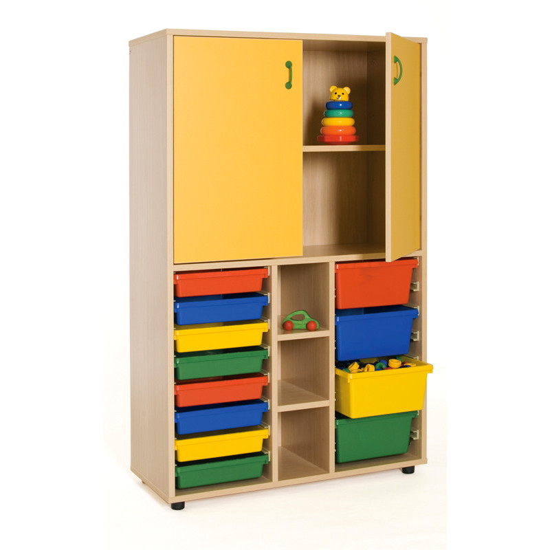 Mobilier bois fabriqué en mélaminé de hêtre. Structure du meuble de 19 mm et fond de meuble de 10 mm d'épaisseur avec chants PVC arrondis de 2 mm. Livré monté mais démontable si besoin. Certifié Tecnalia (norme mobilier infantile et scolaire). Toutes les portes sont montées avec des charnières de sécurité anti pince-doigts pour les meubles concernés. Une personnalisation est possible pour les portes et étagères en utilisant les codes couleur suivants : Préciser le code couleur lors de la command