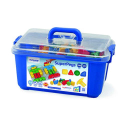 Pièces plastique en 4 formes et 4 couleurs assorties. Livré dans une mallette de rangement en plastique. Fonctionne avec le tableau mural code K 660 249.