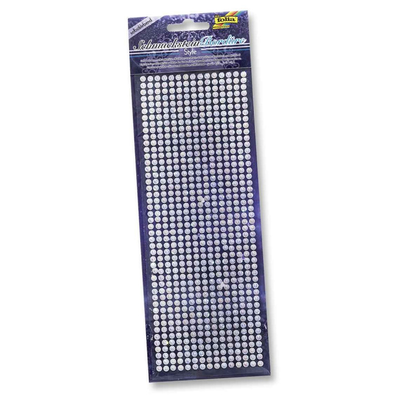 Bordures en strass autocollantes, idéal pour décorer des cartes ou tout autre objet en bois, carton, verre, tissu... Longueur de chaque bordure : 25 cm environ. Chaque bordure est très facilement découpable.