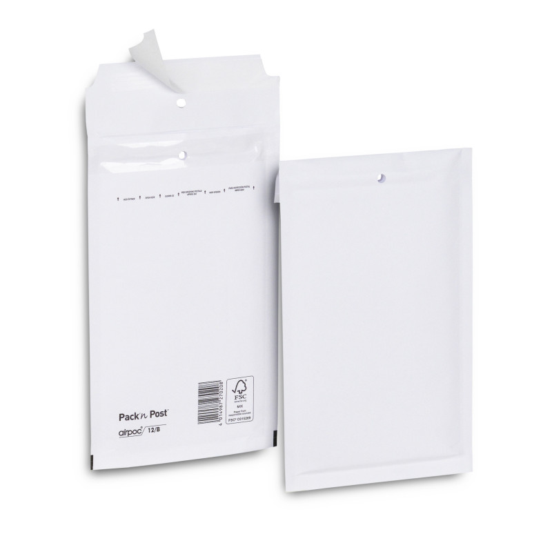 Pochettes velin blanc 75 g/m² doublées d'un matelas de bulles d'air. Fermeture adhésive avec bande de protection. Boîte de 50 à 200 pochettes. Produit certifié fsc.