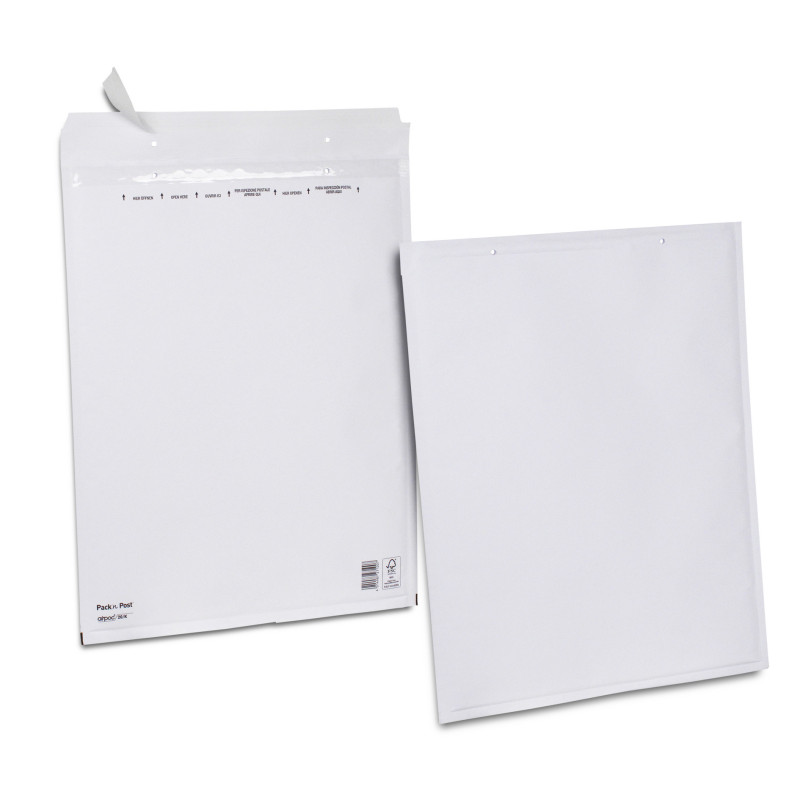 Pochettes velin blanc 75 g/m² doublées d'un matelas de bulles d'air. Fermeture adhésive avec bande de protection. Boîte de 50 à 200 pochettes. Produit certifié fsc.