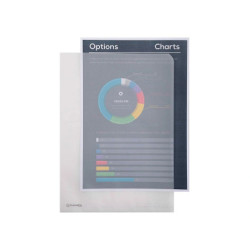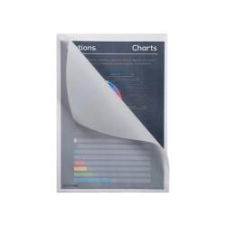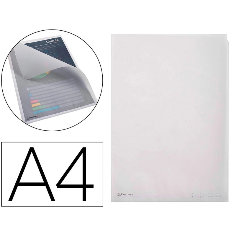 Ouverture en L sur le haut et le côté droit, avec encoche pour faciliter l'insertion. Epaisseur 110g/m².