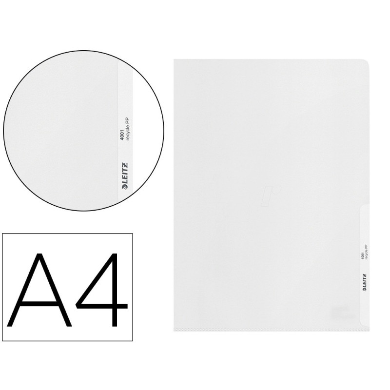 En polypropylène 100% recyclé et 100% recyclable. Ouverture en l. Surface mate grainée. épaisseur 140 microns. Anti-transfert. Sans acide, ne jaunit pas. Coloris transparent. Format a4. Sachet de 25 unités.