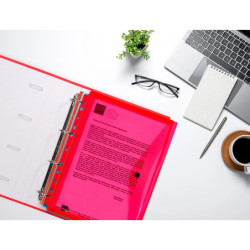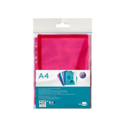 En polypropylène 18/100ème très résistant et perforé. Fermeture par bouton-pression. Capacité : 50 feuilles.