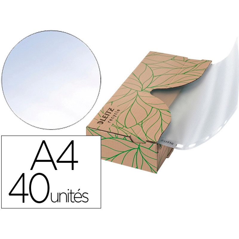 Fabriquées à partir de plastique recyclé à 100% avant consommation, audité et certifié par ul, 100% recyclable. La boîte innovante permet de distribuer les pochettes en plastique une par une et de maintenir les autres pochettes en place. Bande renforcée universelle pré-perforée de 11 trous. Utilisables dans tout classeur à anneaux ou à levier. Surface mate grainée avec un film de qualité d'une épaisseur de 70 microns. Film anti-copie empêchant l'encre de déteindre sur le plastique. Les matériaux