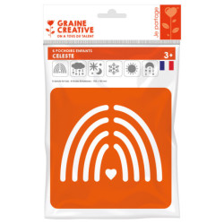Pochoirs en plastique lavables à l’eau savonneuse. Dim. : 14,5 x 14,5 cm - Pochette de 6 pochoirs assortis