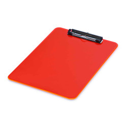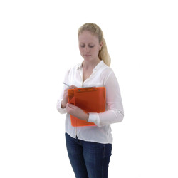 Plaque en plastique robuste de qualité, pince plate à arceau avec anse de manipulation, et patte d’accrochage.
