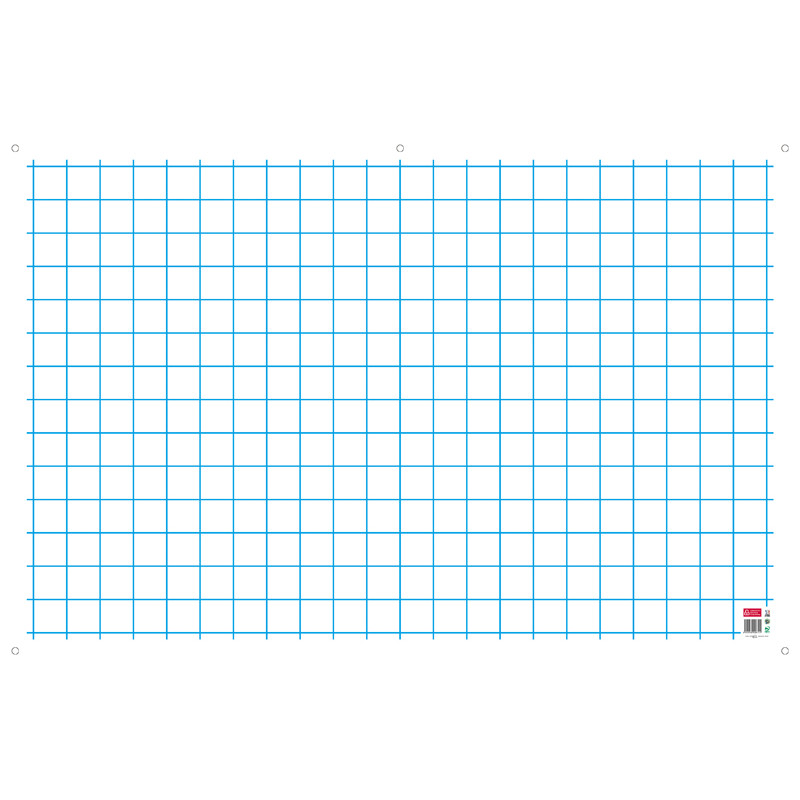 En polypropylène 5/10e, effaçable à sec ou à l’eau, écriture avec feutre spécial tableau blanc. 4 trous de suspension.Format 70 x 100 cm
