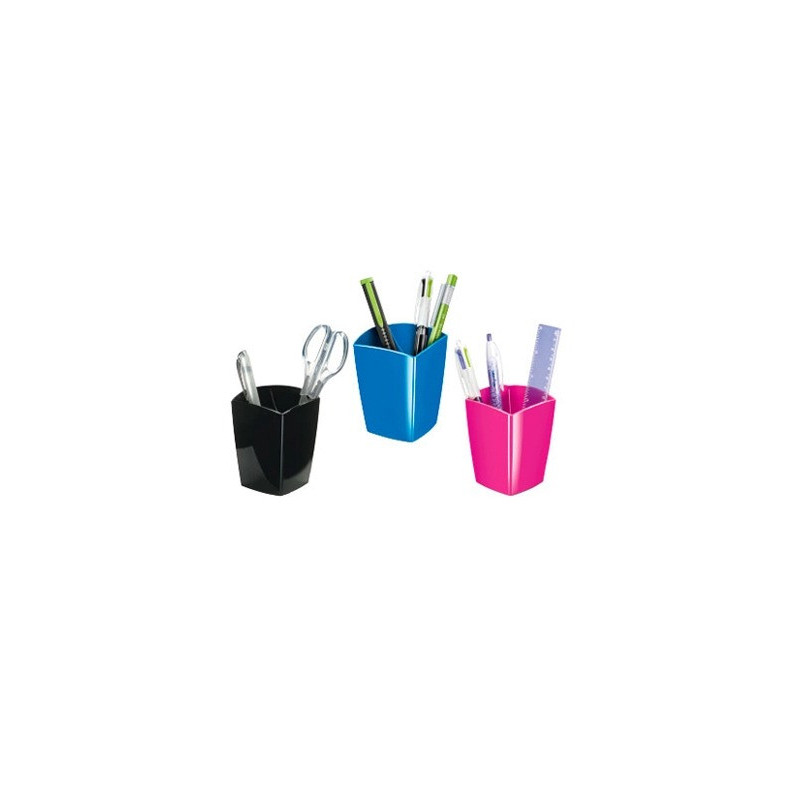 En polystyrène. Pot à crayons avec 2 compartiments.