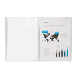 Couverture en polypropylène flexible de 40/100ème. 40 pochettes fixes, 80 vues. Pour documents format a3.