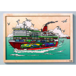 Regarder à l’intérieur des puzzles ! Puzzles de très belle qualité, en bois (bouleau) et illustrés et à 2 niveaux avec un nombre de pièces di?érentes selon le niveau. 3 modèles : train, avion, ferry. 60 pièces chaque (une couche avec 25 pièces et une autre avec 35 pièces).