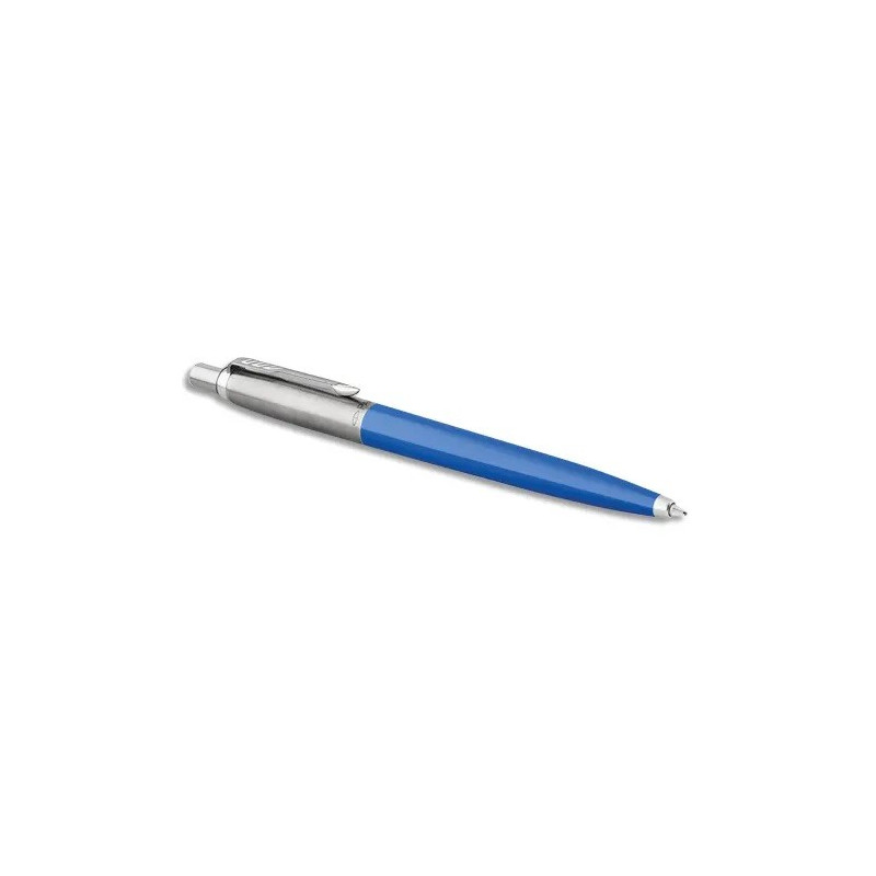 Stylo bille rétractable. Corps emblématique en plastique, haut du corps en acier inoxydable poli. Pointe Moyenne. Encre Bleue.