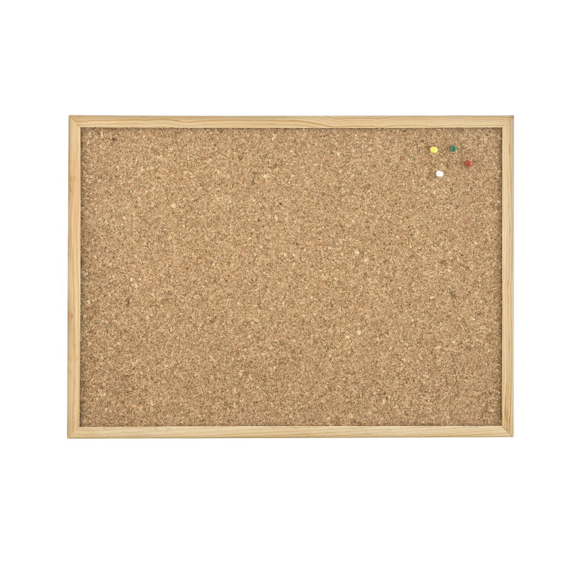 Tableau en liège aggloméré sur un solide support de 7 mm d’épaisseur, permet le punaisage total et répété. Encadrement en aluminium naturel. Coins en plastique gris. Livré avec éléments de fixation.Dim. (L x l) : 90 x 120 cm
