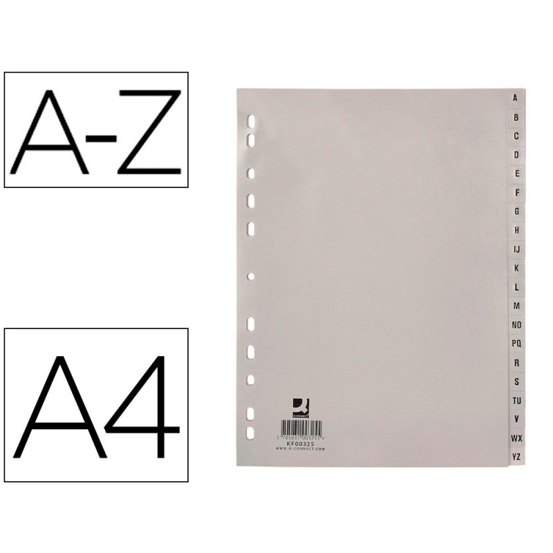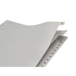 Fabriqué en polypropylène. épaisseur 12/100ème. Multiperforation. Idéal pour classer des documents. Alphabet gravé sur les onglets des intercalaires. Pour format a4. Coloris gris. Dimensions : 225 x 297 mm.