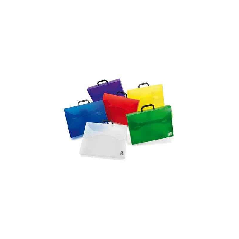 Polypropylène rigide 800 ?, fermeture facile avec poignée. Coloris assortis (livraison selon arrivage).